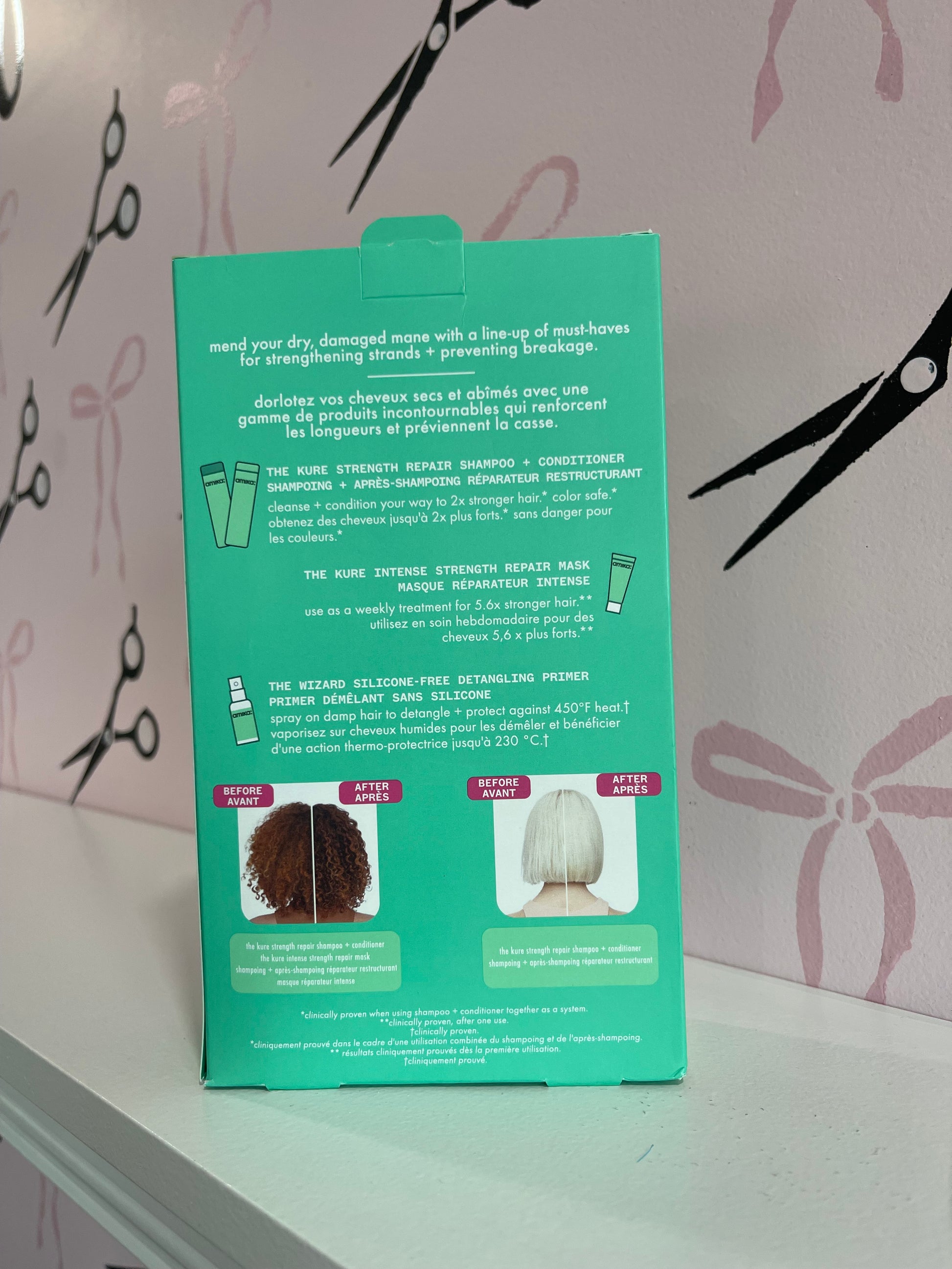 Full size! The Kure Strength Repair Shampoo and Conditioner: A hydrating shampoo and conditioner packed with vegan proteins and bond fortifying technology for 2x stronger hair and 55% less breakage