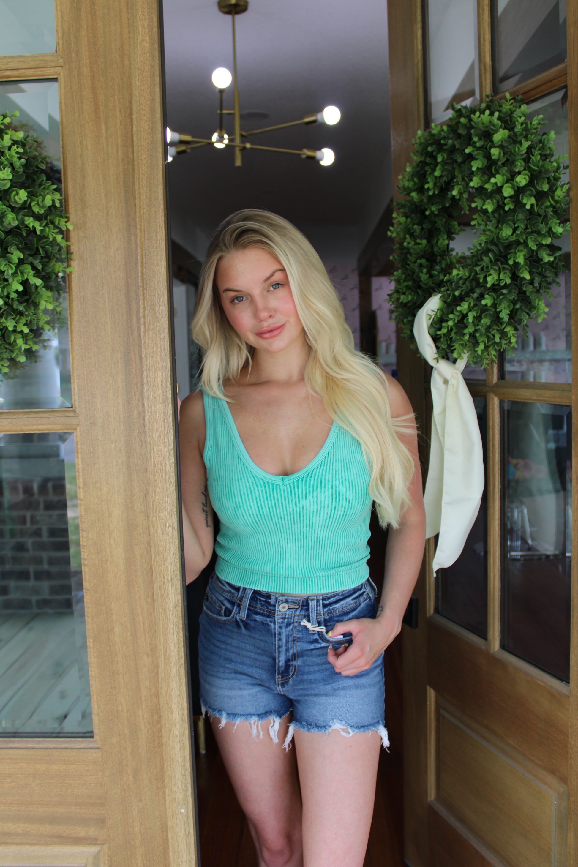 Say hello to your new layering essential! This ribbed V-neck cropped tank is the ultimate combo of comfort and style. Built-In bra for support.